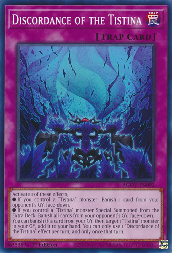 You can banish this card from your GY, then target 1 "Tistina" monster in your GY; add it to your hand. You can only use 1 "Discordance of the Tistina" effect per turn, and only once that turn.