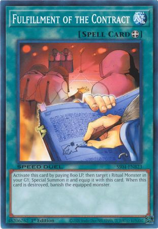 Activate this card by paying 800 LP, then target 1 Ritual Monster in your GY; Special Summon it and equip it with this card. When this card is destroyed, banish the equipped monster.