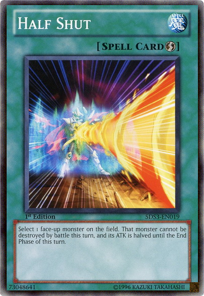 Select 1 face-up monster on the field. That monster cannot be destroyed by battle this turn, and its ATK is halved until the End Phase of this turn.