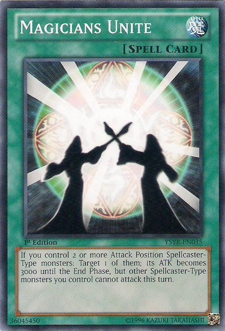 If you control 2 or more Attack Position Spellcaster-Type monsters: Target 1 of them; its ATK becomes 3000 until the End Phase, but other Spellcaster-Type monsters you control cannot attack this turn.