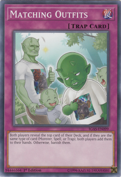 Both players reveal the top card of their Deck, and if they are the same type of card (Monster, Spell, or Trap), both players add them to their hands. Otherwise, banish them.