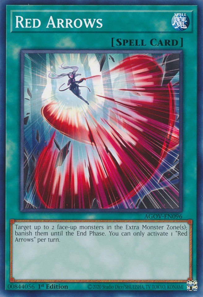 Target up to 2 face-up monsters in the Extra Monster Zone(s); banish them until the End Phase. You can only activate 1 "Red Arrows" per turn.