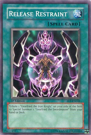 Tribute 1 "Gearfried the Iron Knight" on your side of the field to Special Summon 1 "Gearfried the Swordmaster" from your hand or Deck.