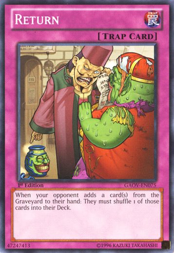 When your opponent adds a card(s) from the Graveyard to their hand: They must shuffle 1 of this cards into their Deck.