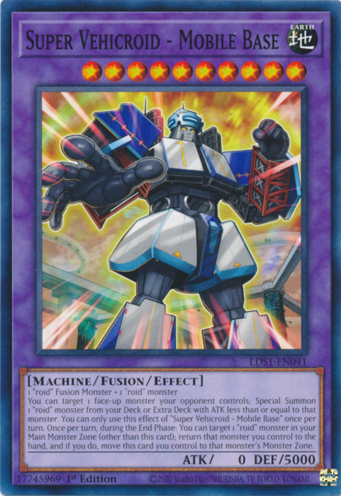 You can target 1 face-up monster your opponent controls; Special Summon 1 "roid" monster from your Deck or Extra Deck with ATK less than or equal to that monster. You can only use this effect of "Super Vehicroid - Mobile Base" once per turn. Once per turn, during the End Phase: You can target 1 "roid" monster in your Main Monster Zone (other than this card); return that monster you control to the hand, and if you do, move this card you control to that monster's Monster Zone.