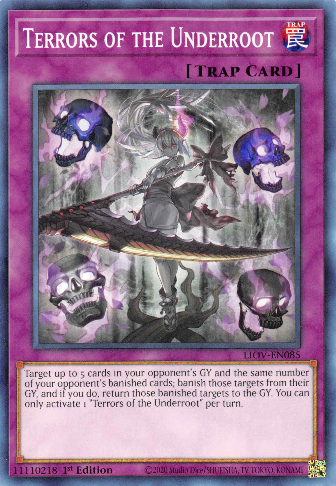 Target up to 5 cards in your opponent's GY and the same number of your opponent's banished cards; banish those targets from their GY, and if you do, return those banished targets to the GY. You can only activate 1 "Terrors of the Underroot" per turn.