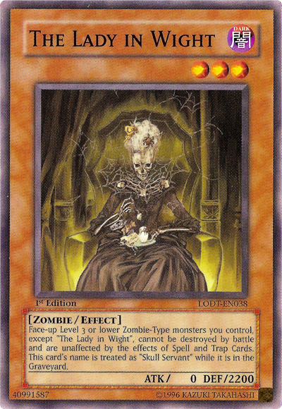 Face-up Level 3 or lower Zombie-Type monsters you control, except "The Lady in Wight", cannot be destroyed by battle and are unaffected by the effects of Spell and Trap Cards. This card's name is treated as "Skull Servant" while it is in the Graveyard.