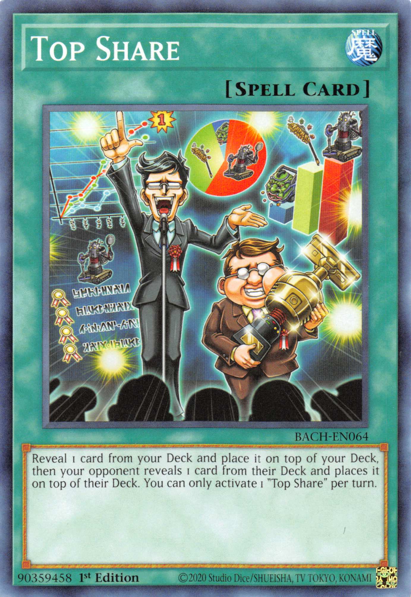 Reveal 1 card from your Deck and place it on top of your Deck, then your opponent reveals 1 card from their Deck and places it on top of their Deck. You can only activate 1 "Top Share" per turn.