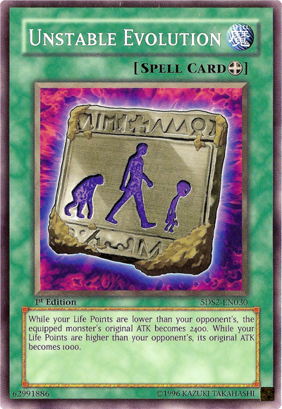 While your Life Points are lower than your opponent's, the equipped monster's original ATK becomes 2400. While your Life Points are higher than your opponent's, its original ATK becomes 1000.