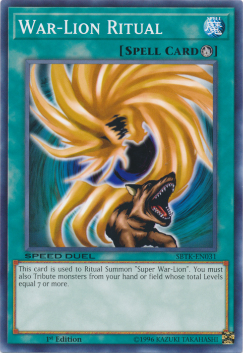 This card is used to Ritual Summon "Super War-Lion". You must also Tribute monsters from the field or your hand whose total Levels equal 7 or more.
